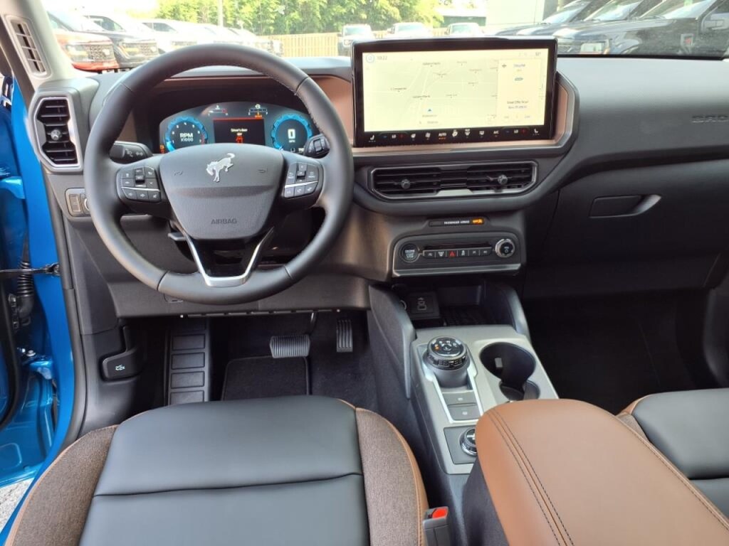 I got a 2025 Big Bend with the black diamond off road package. The steel modular front and rear in combination with bush guard gives this year model. A very aggressive off road look. With the ability to easily mount accessories and power them with the factory installed auxiliary switches. Hitch receiver seamlessly mounted into the rear steel bumper flanked by some very chunky recovery points. The upgraded aluminum rims wrapped with Continental all-terrains. It make this the most capable bronco sport yet. The interior of the 2025 has been updated with a new 13 inch touchscreen with Android Auto and apple car play. The lines of the dash flow elegantly from the new infotainment screen to the new all digital 12 inch gauge chaster. Toggling through the different modes on the gauge chaster is very intuitive, and all the displays are laid out very cleanly. Moving from gauge chaster the center storage cubby just below the infotainment screen there is a wireless charger and USB/ USB-c ports. The passenger side of that same cubby gets a handle and a matching one on the roof just in case the driver bucks a little too much. The passenger also gets a mesh storage area. That leads us to the fact this vehicle has tons of storage options all throughout. You have pockets on the sides of the front two seat big enough for the latest new phones. Very generous door storage on all four doors plus huge glove box and center console with 12 volt outlet. The back side of the center console has air vents and another 12 volt outlet plus a 110 outlet. Now getting to the cargo area it is massive for a crossover SUV. With off road package you get a cargo management system and a very nice rubber mat. Under that there is a full size tire plus scissor jack and funnel to use with the capless filler system. On the liftgate there isa pair of very bright led lights turned on with a switch in the cargo area. This feature packed vehicle has tons awesome gadgets and hidden a little homages I spend all day just talk that. At the end of the day it is car. So how does it drive. It is wonderful, the steering and pedal response is beautiful. Rides very smooth and little to no road noise going down the highway. The active cruise control and co-pilot 360 have been very handy. The car literally drives itself most of the time. There is not enough good things I could same about this car. I love it and you pick one too. You will see what I mean.
