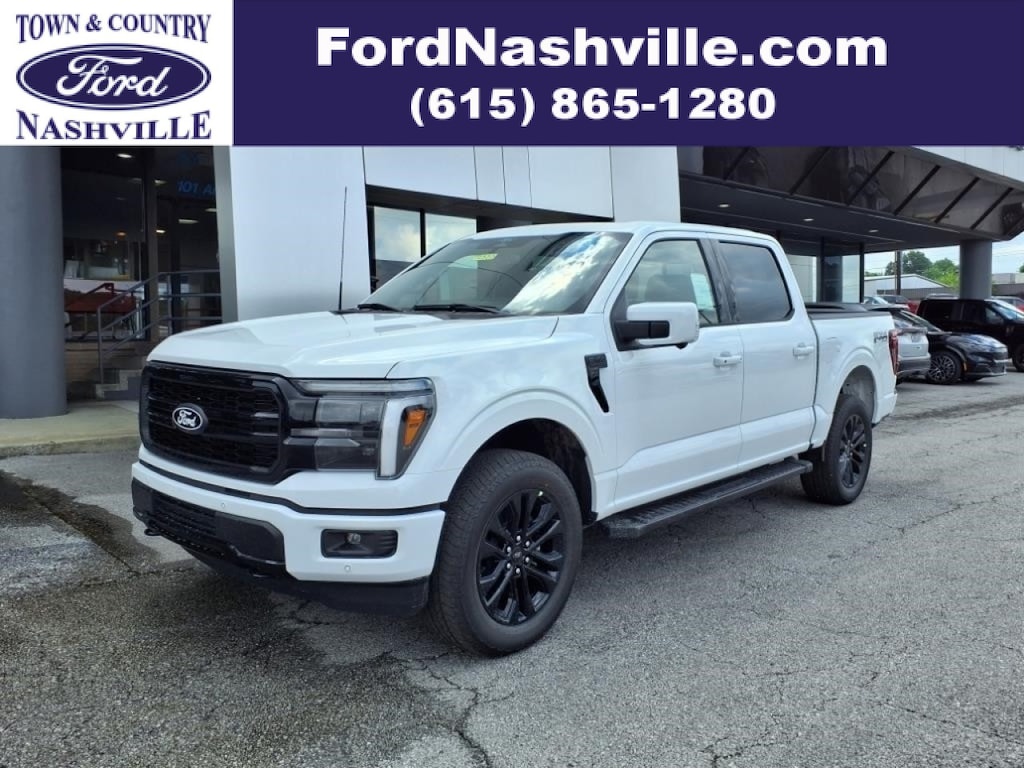 The 2025 Ford Supercrew 4x4 F-150 Lariat is a powerful and reliable motorcar. It has a 5.0 liter V8 400hp 410 lb-ft engine with fuel injection, and an oxford white (yz) exterior. It has an impressive 5 out of 5 stars crash test rating, and its fuel economy in city is 16 mpg and fuel economy on highway is 24 mpg. It also comes with a number of features such as touch screen display, Bluetooth audio connection, blind spot sensor, hill start assist, part time with on demand four wheel drive, navigation system with voice recognition, and Bluetooth phone connectivity. The interior of this car is upholstered in leather seats, providing a comfortable ride no matter where you take it. The 2025 Ford Supercrew 4x4 F-150 Lariat is the perfect car for anyone looking for a reliable and powerful ride. Contact Details: Town & Country Ford, 101 Anderson Lane, Madison, TN, 37115, sales@fordnashville.com, (615) 865-1280. *Although every reasonable effort has been made to insure accuracy, it is not guaranteed, please call to confirm. All vehicles are subject to prior sale. Price does not include applicable tax, title, processing fee of $688, license and the cost of optional equipment selected by purchaser. New Vehicle pricing does include destination and delivery charges from Ford as shown on factory window sticker. Incentives are based on local offerings, residency restrictions apply.